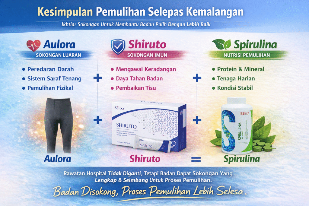 tetapi ikhtiar sokongan yang boleh membantu badan pulih dengan lebih baik apabila dilakukan secara konsisten dan berhemah.Pemulihan adalah proses.