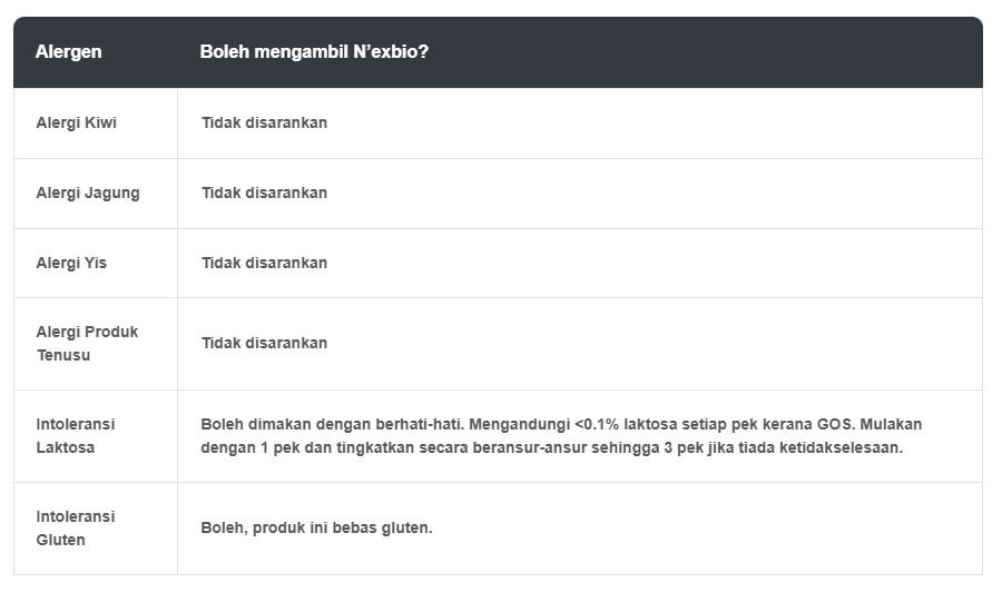 Bolehkah individu yang mempunyai alahan terhadap kiwi, jagung, yis, produk tenusu, laktosa atau gluten mengambil produk ini?